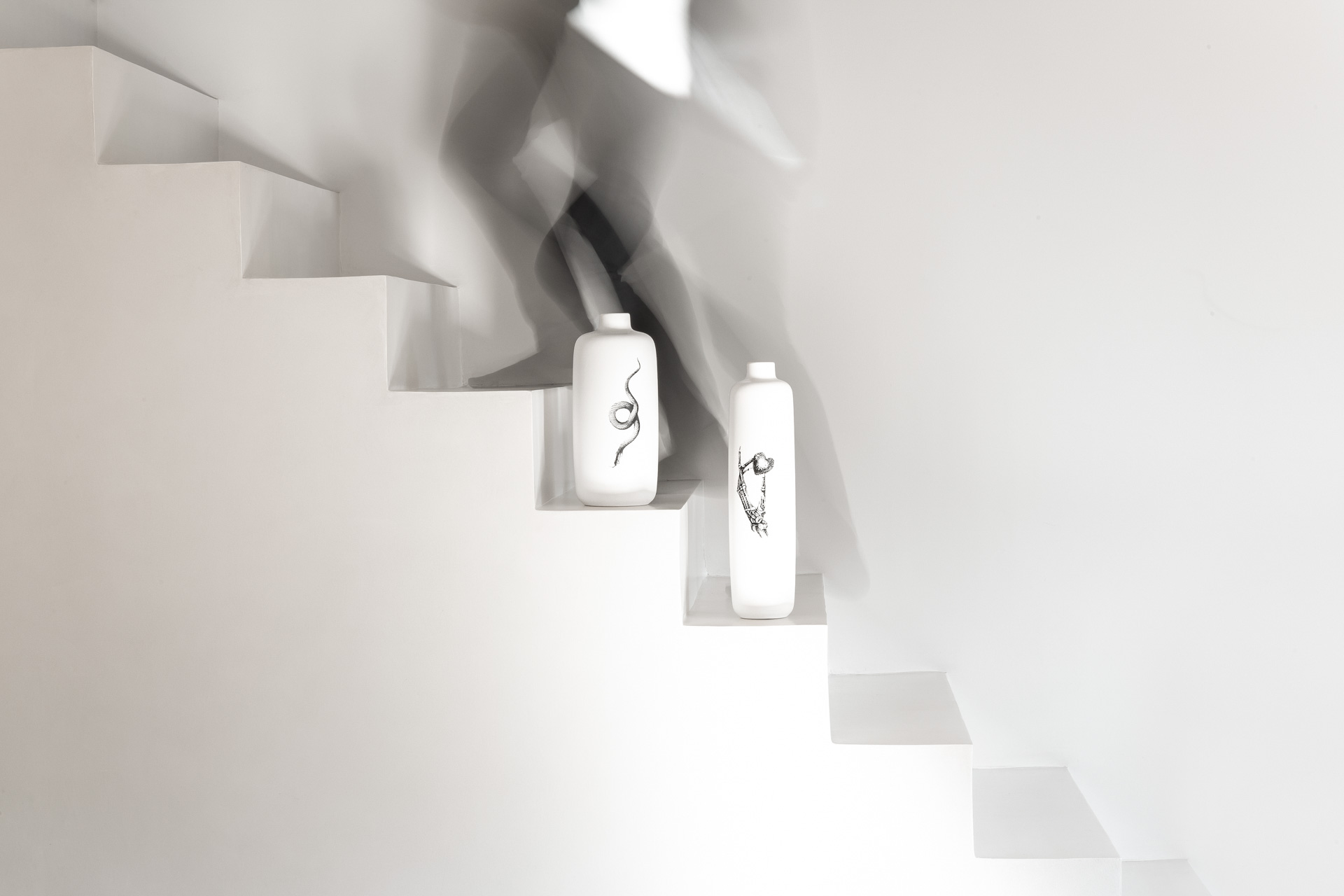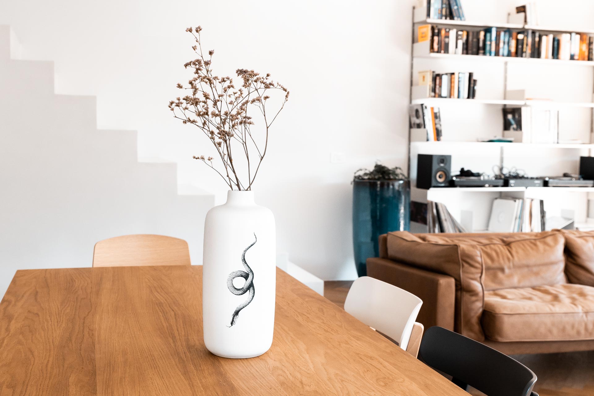 Vaso medio con tatuaggio raffigurante un serpente attorcigliato.